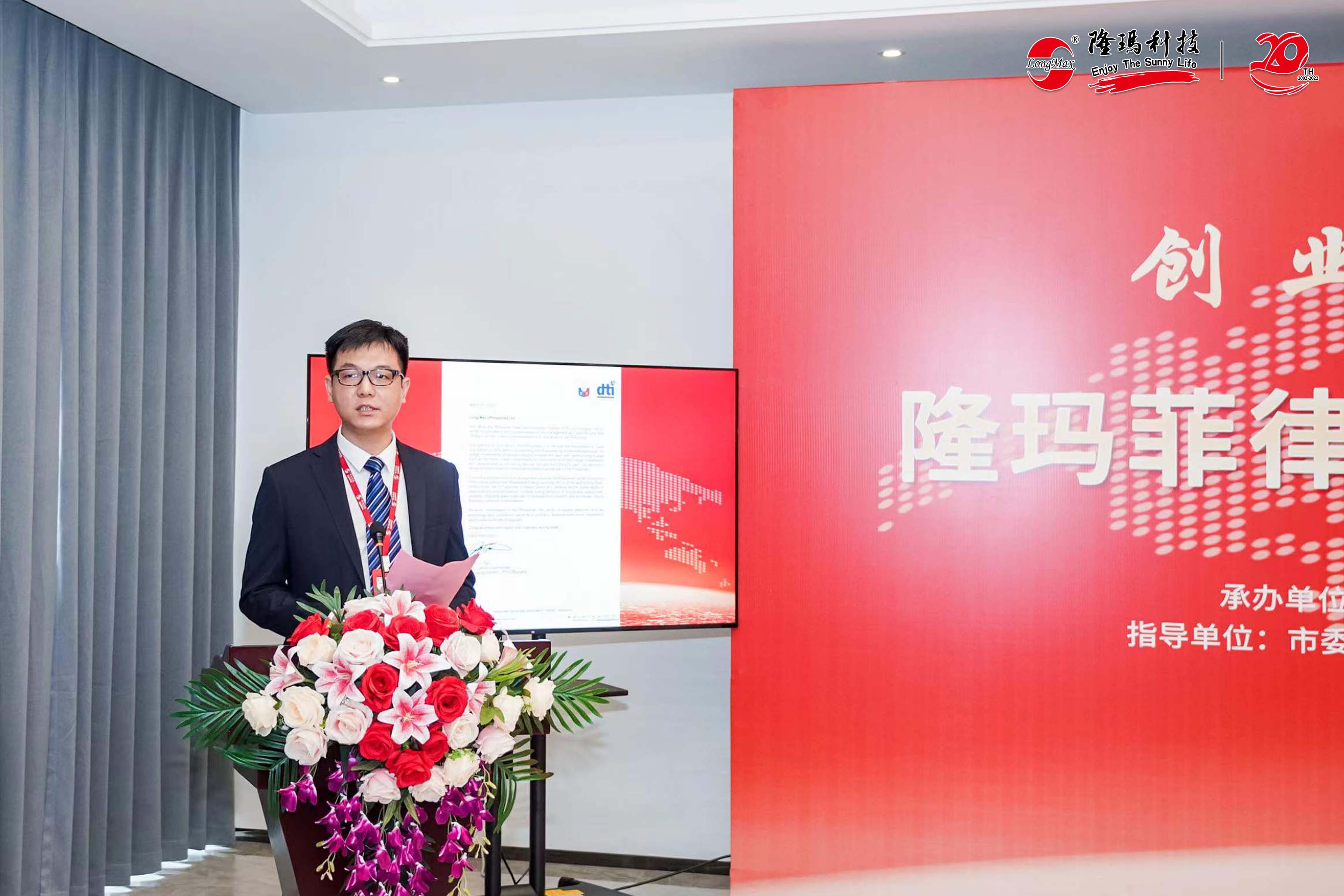 第二項(xiàng)議程,隆瑪科技海外事業(yè)部負(fù)責(zé)人 程霄鵬宣讀菲律賓駐上海總領(lǐng)館發(fā)來的賀詞。