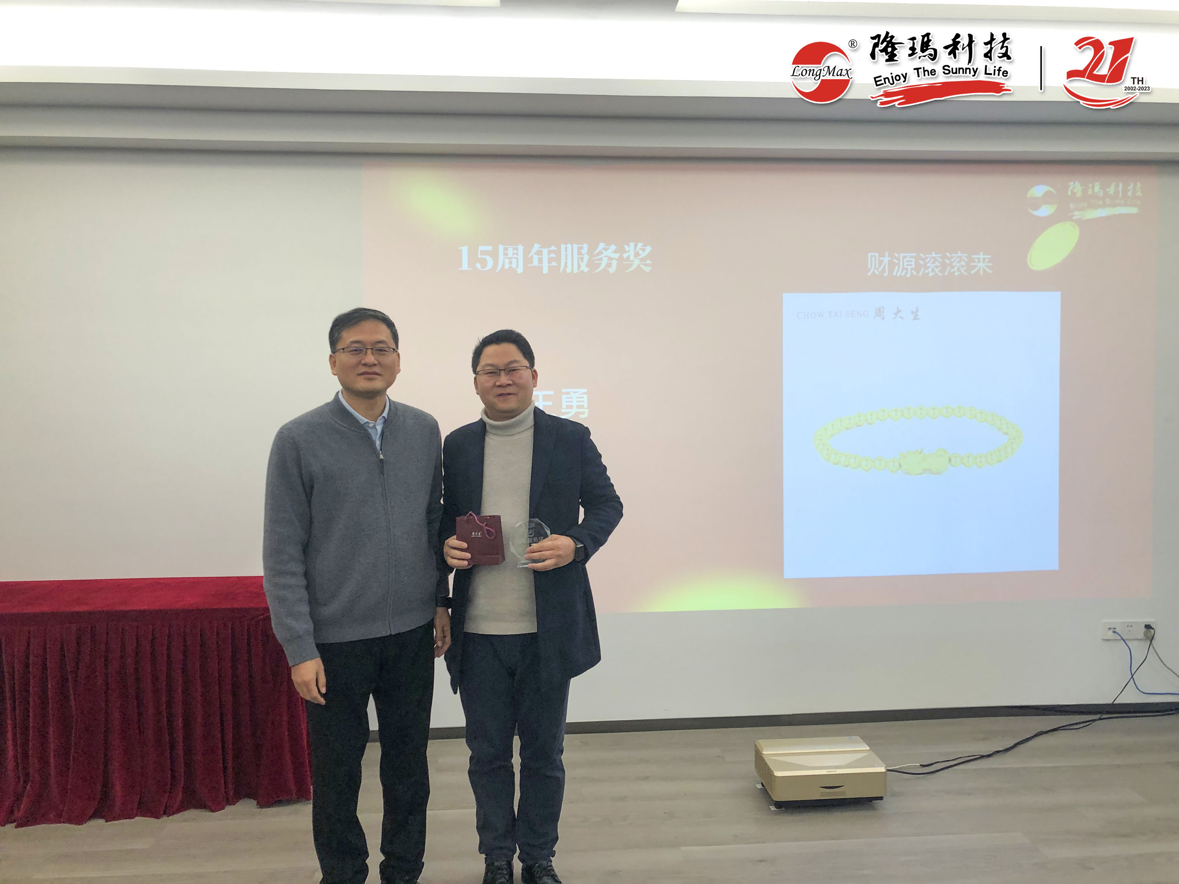 在2022年,我們一共有13名員工在公司服務滿5/10/15/20周年。在年會上,楊宇輝總經理親自為他們頒發(fā)了獎品,感謝他們在公司多年的付出,與公司共同成長。累計至今,共有百余名員工已陪伴隆瑪成長,有的從生澀的職場新人成長到如今工作中游刃有余的優(yōu)秀員工,有的帶來了豐富的工作經驗及技能,讓隆瑪發(fā)展得更好。每一位員工的堅持,都是隆瑪發(fā)展的基石,也是隆瑪最大的財富。