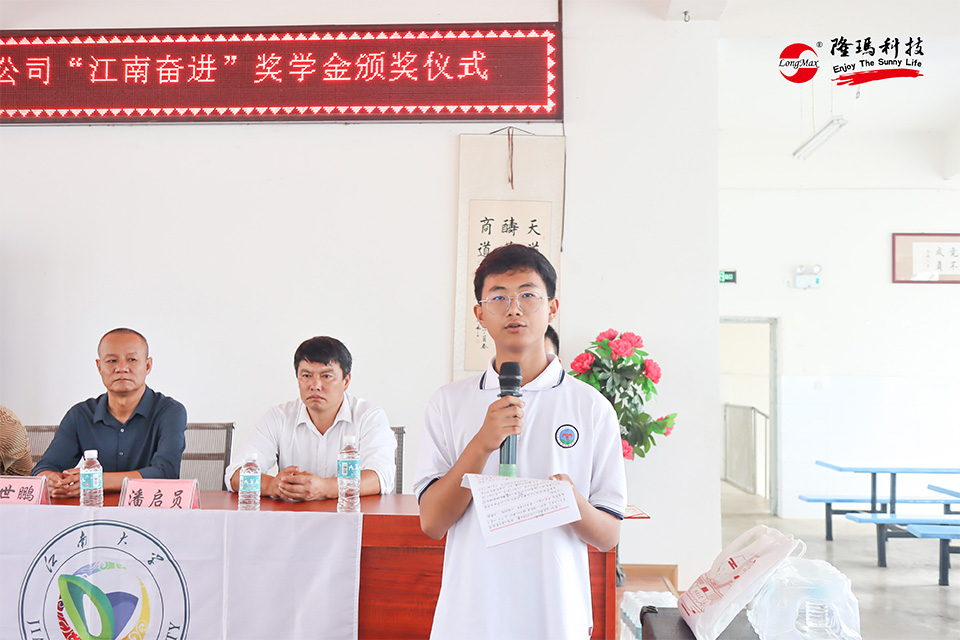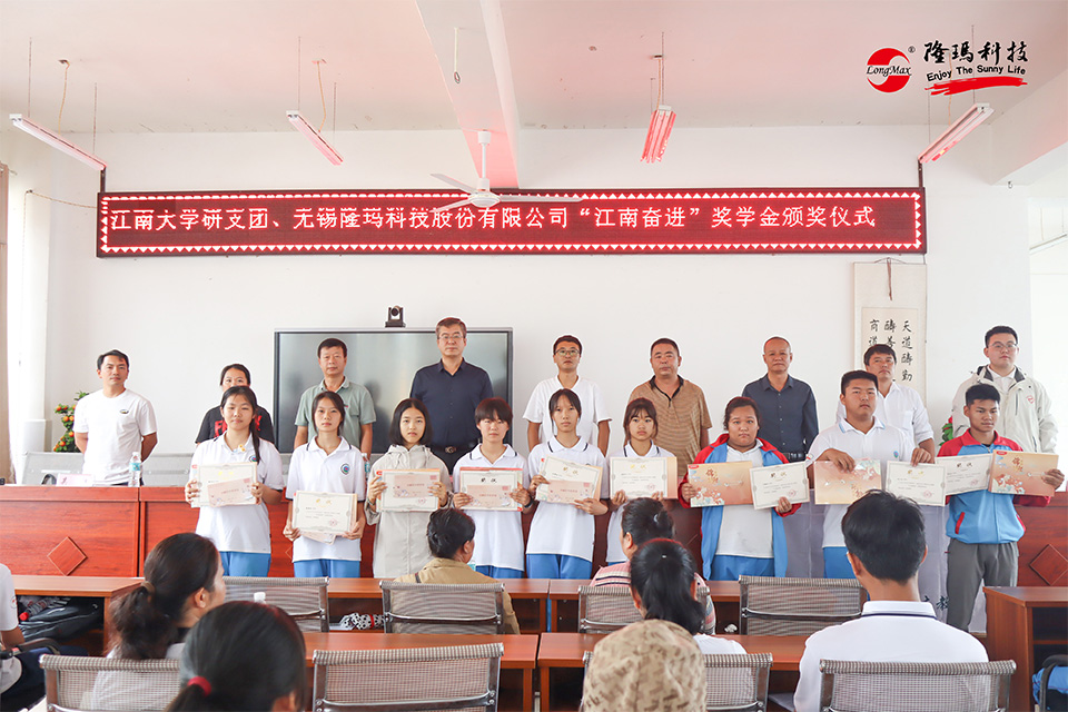 無(wú)錫隆瑪科技股份有限公司傾情贊助本屆“江南奮進(jìn)”獎(jiǎng)學(xué)金,為20名優(yōu)秀學(xué)子捐贈(zèng)了總價(jià)值8500元的獎(jiǎng)學(xué)金及精美獎(jiǎng)品。