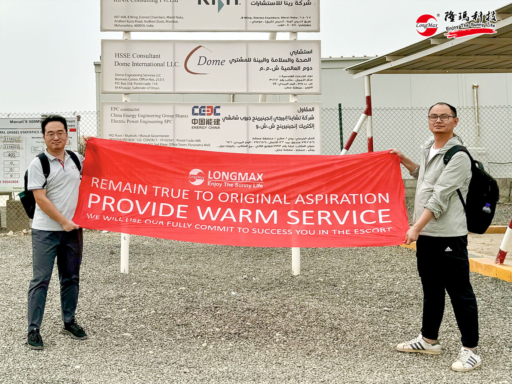 第三站,服務(wù)團(tuán)隊(duì)馬不停蹄奔赴阿曼Manah II項(xiàng)目,冒著烈日風(fēng)沙為客戶送去“服務(wù)及時(shí)雨”。